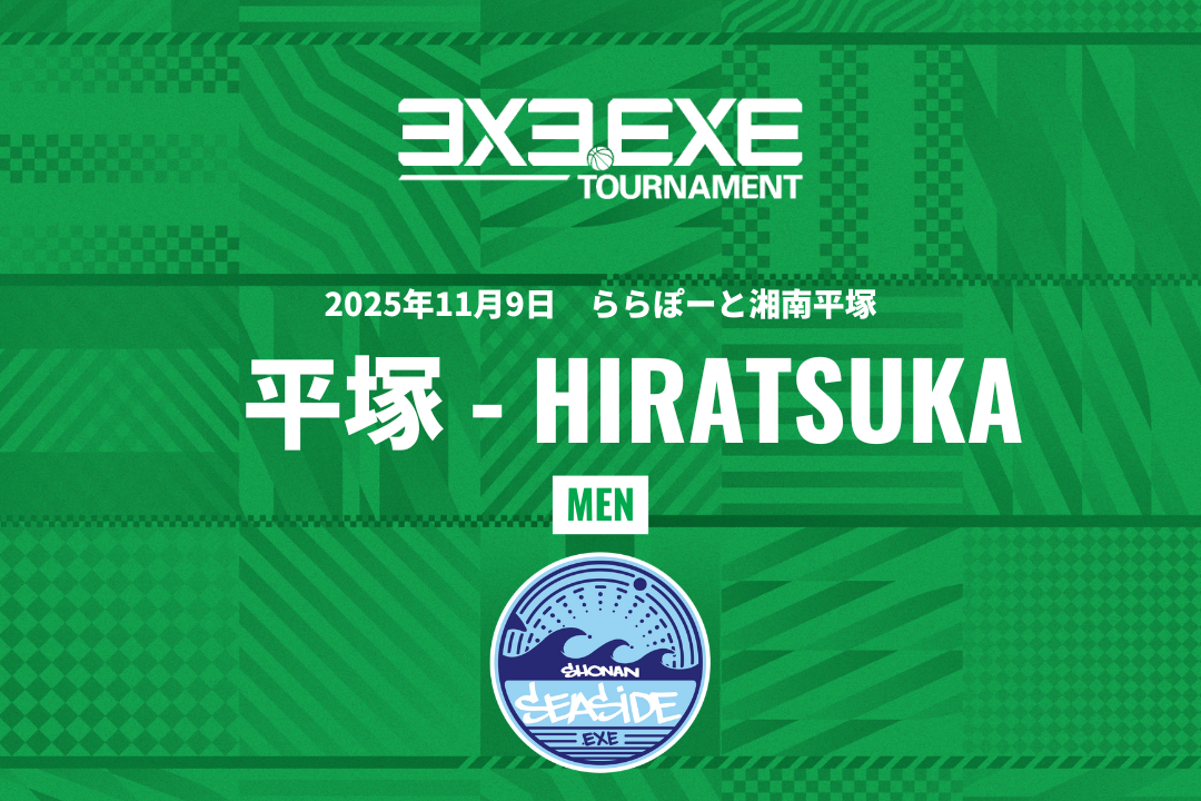 3x3.EXE TOURNAMENT 2025-2026 HIRATSUKA presented by ららぽーと湘南平塚の参加チーム募集受付を2025年10月6日(月) 18:00 より開始いたします。下記の大会ページをご確認いただき、専用フォームから申込ください。