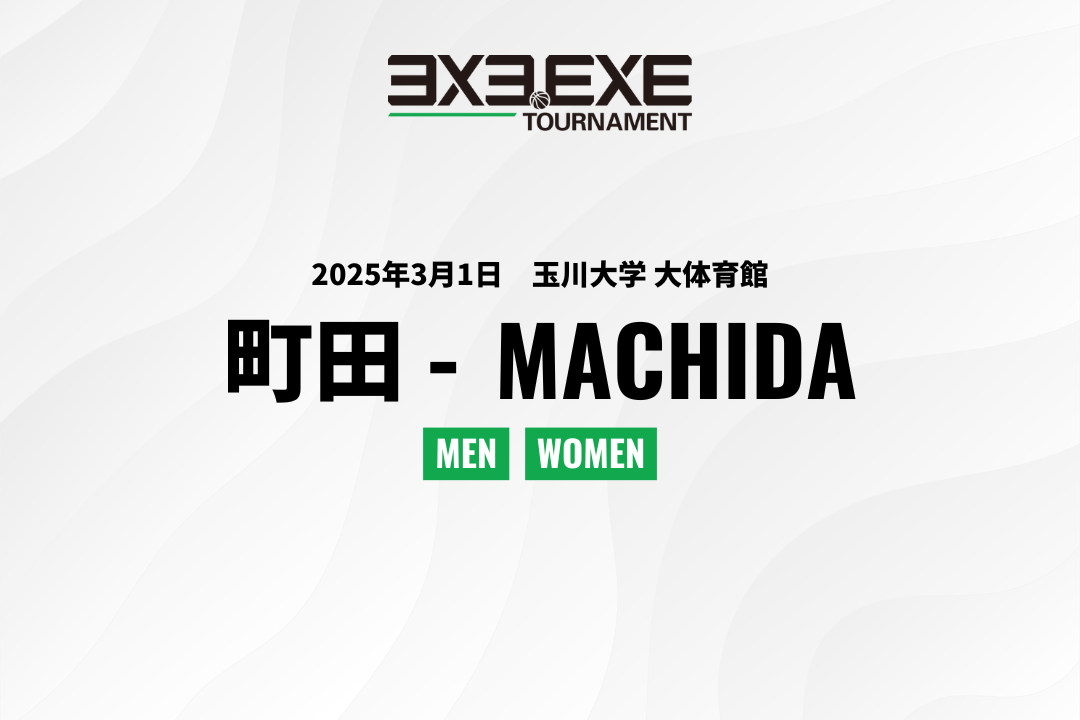 3x3.EXE TOURNAMENT 2024-2025 町田予選の参加チーム募集受付を2025年1月6日(月)より開始致します。下記の大会ページをご確認いただき、専用フォームから申込ください。